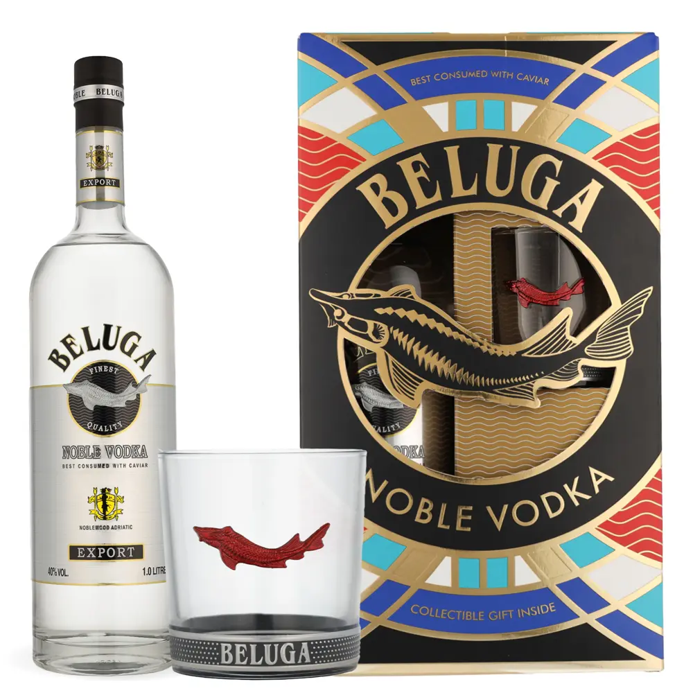 Poklon set sadrži elegantnu čašu ukrašenu prepoznatljivim simbolom Beluge, što dodatno naglašava luksuz i ekskluzivnost ovog brenda. Zahvaljujući glatkom profilu i suptilnim notama slada, Beluga Noble savršena je za uživanje u čistom obliku, ohlađena ili s kockicom leda, a izvrsno se uklapa i u sofisticirane koktele. Ova vodka slovi za jednu od najcjenjenijih ruskih vodki na svjetskom tržištu, što potvrđuje i njezina popularnost među istinskim znalcima i kolekcionarima.