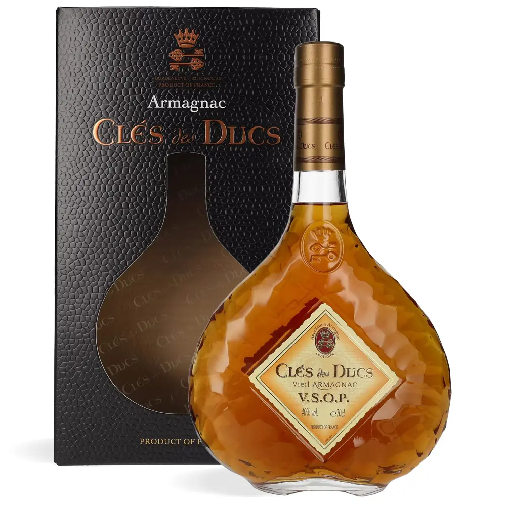 Clés des Ducs V.S.O.P. Armagnac je profinjeni francuski destilat koja odležava najmanje četiri godine u hrastovim bačvama. Nastaje u regiji Bas-Armagnac, poznatoj po najfinijim armagnacima. U aromi prevladavaju note vanilije, suhog voća i badema. Pije se samostalno, kao digestiv, ili uz tamnu čokoladu i sireve s plemenitom plijesni.
