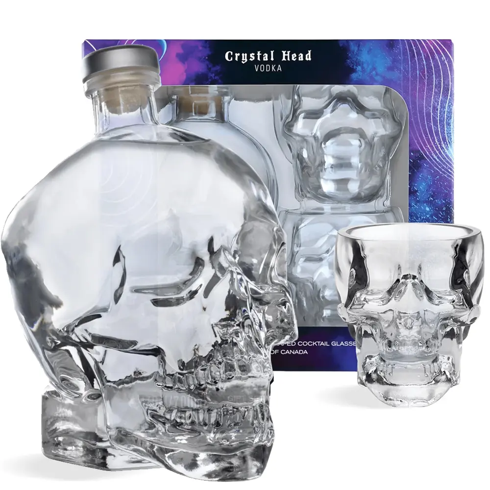 Boca u obliku lubanje, inspirirana legendama o kristalnim lubanjama, odmah privlači pozornost i postala je simbol luksuza i nekonvencionalnog dizajna. Poklon set sadrži i dvije staklene čaše, posebno oblikovane kako bi istaknule čistoću i aromatične nijanse vodke. Crystal Head Vodka idealna je za uživanje u čistom obliku, rashlađena, ili kao sastojak za premium koktele, omogućujući istinsko iskustvo vrhunske kvalitete i originalnog stila.
