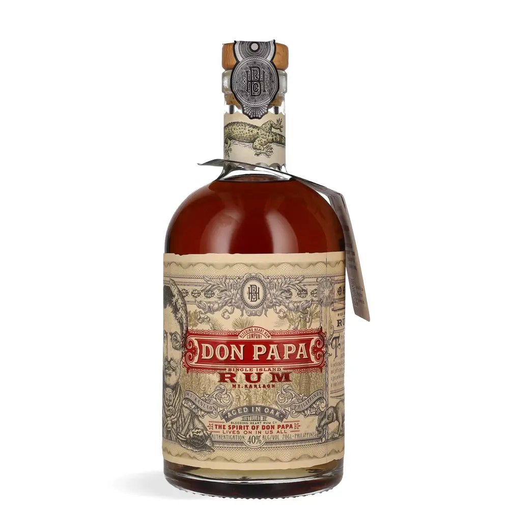 Don Papa Single Island Rum predstavlja spoj filipinske tradicije i suvremenog duha. Proizvodi se na otoku Negros, regiji poznatoj po plodnoj zemlji i šećernoj trsci vrhunske kvalitete. Melasa dobivena iz lokalne trske destilira se s pažnjom i zatim dozrijeva sedam godina u bačvama od američkog hrasta, koje su prethodno sadržavale bourbon. Time se razvijaju bogate arome i baršunasti profil.