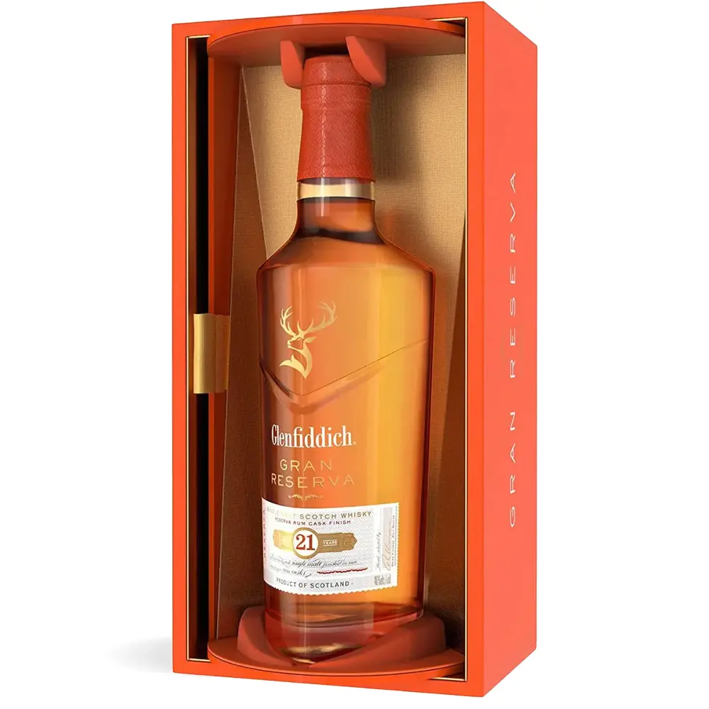 Ova metoda odležavanja inspirirana je idejom spajanja škotske destilacijske vještine s toplim, slatkim aromama rumovih bačvi, što daje ovom viskiju njegovu jedinstvenu dubinu i bogatstvo. Glenfiddich 21 Years Old Gran Reserva danas je jedan od najcjenjenijih predstavnika brenda, simbol luksuza, tradicije i inovacije u svijetu single malt whiskyja.