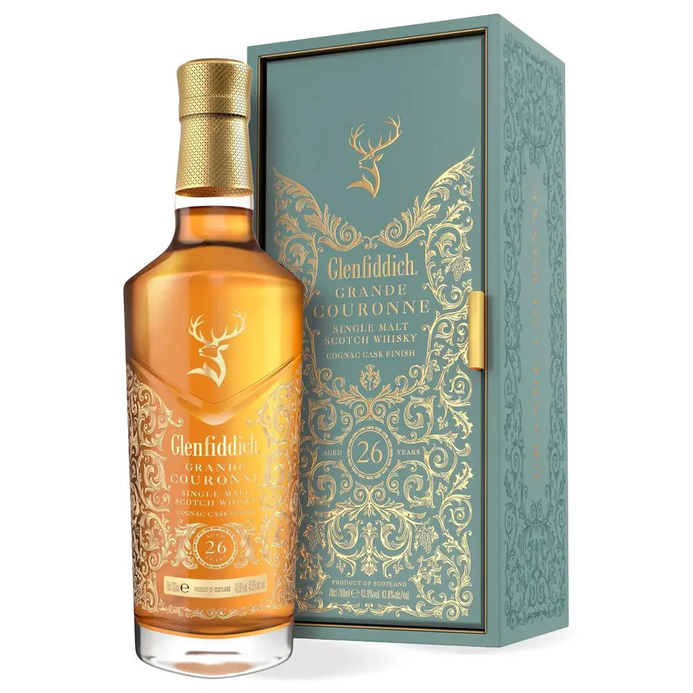 Glenfiddich 26 Years Old Grande Couronne Scotch whisky se proizvodi u destileriji Glenfiddich u Dufftownu, u srcu regije Speyside, gdje se viski destilira još od 1887. godine. Destileriju je osnovao William Grant s vizijom stvaranja vrhunskog single malt whiskya, a ta se tradicija nastavlja kroz generacije. Ovaj viski najprije dozrijeva u američkim hrastovim bačvama, gdje razvija svoju osnovnu strukturu i aromatski profil. Nakon dugog sazrijevanja slijedi završna faza u francuskim konjak bačvama, koja ovom izdanju daje dodatnu eleganciju i složenost.