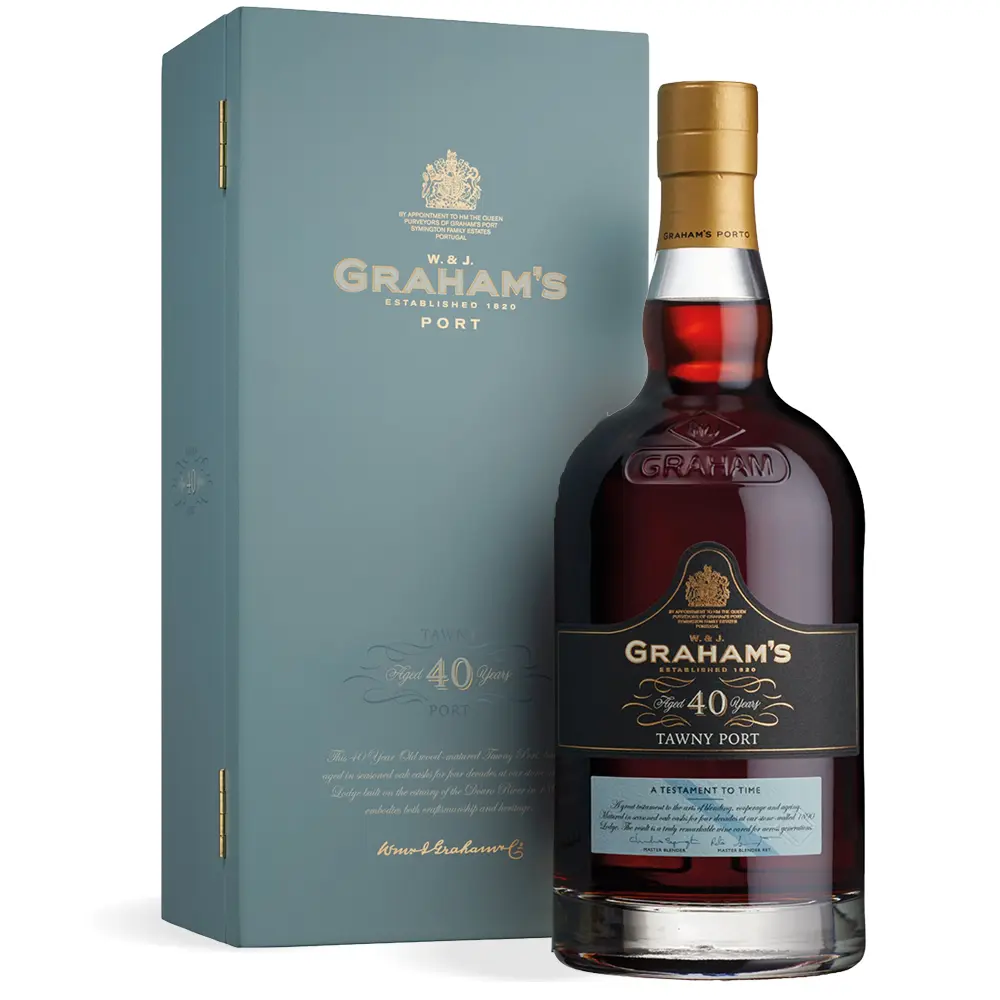 Graham’s 40 Years Old Tawny Port proizvodi se u kući Graham’s, jednoj od najuglednijih porto kuća u dolini Douro, s tradicijom koja seže u 1820. godinu. Grožđe dolazi s odabranih vinograda smještenih na strmim terasama, gdje sunce i tlo stvaraju idealne uvjete za razvoj bogatih aroma. Nakon berbe, fermentacija se prekida dodatkom vinskog destilata, čime se zadržava prirodna slatkoća i struktura vina. Dozrijevanje se odvija tijekom više desetljeća u starim hrastovim bačvama, gdje vino postupno razvija karakterističnu jantarno bakrenu boju i složen aromatski profil.