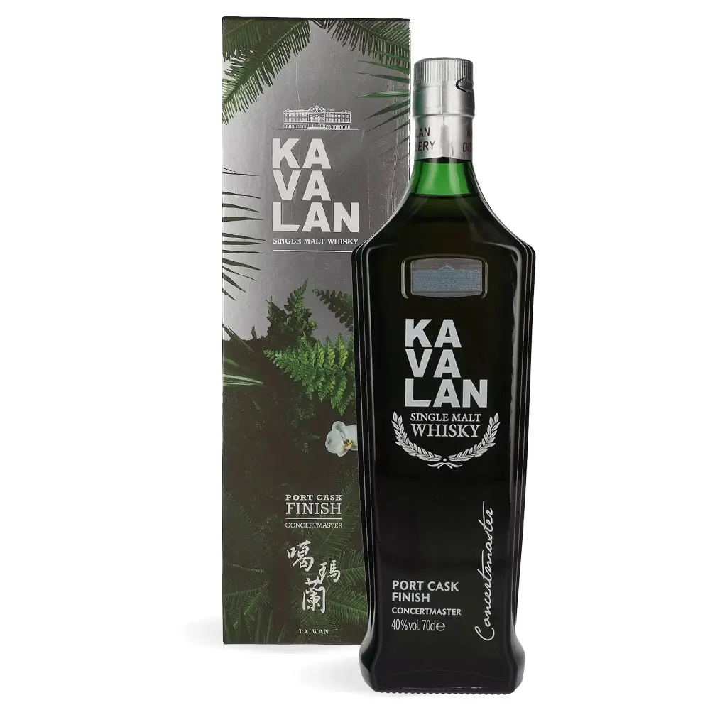 Kavalan Concertmaster Port Cask Finish Festif Edition Single Malt Whisky predstavlja limitirano izdanje koje spaja tajvansku preciznost i tropski karakter dozrijevanja. Ovaj viski dozrijeva u kombinaciji bourbon, sherry i vinskih bačava, a završno sazrijevanje u porto bačvama donosi voćnu dubinu i svilenkastu teksturu. Uravnotežen, elegantan i aromatičan, namijenjen je ljubiteljima profinjenih single malt izdanja s egzotičnim karakterom.
