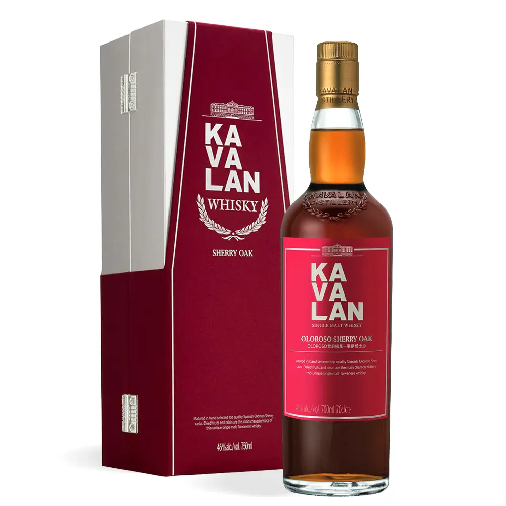 Kavalan Oloroso Sherry Oak Single Malt Whisky proizvodi se u destileriji Kavalan smještenoj u regiji Yilan na sjeveroistoku Tajvana. Ova interpretacija temelji se na snažnom Solist Oloroso izdanju koje se prilagođava na 46% alkohola kako bi se postigla veća ravnoteža i pristupačnost. Viski dozrijeva u pažljivo odabranim Oloroso sherry bačvama koje oblikuju njegov prepoznatljiv profil suhog voća, orašastih nota i začina. Tropska klima ubrzava sazrijevanje i omogućuje razvoj intenzivnih aroma u kraćem vremenu.