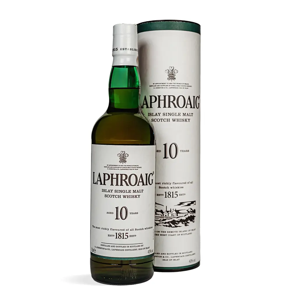 Laphroaig 10 Years Old Whisky legendarni je škotski single malt s Islay otoka, poznat po snažnim dimnim i tresetnim notama, uz primjese slatkoće vanilije i morskih minerala. Ovaj intenzivan viski jedinstvenog karaktera nudi autentično iskustvo za istinske ljubitelje škotskog whiskyja.