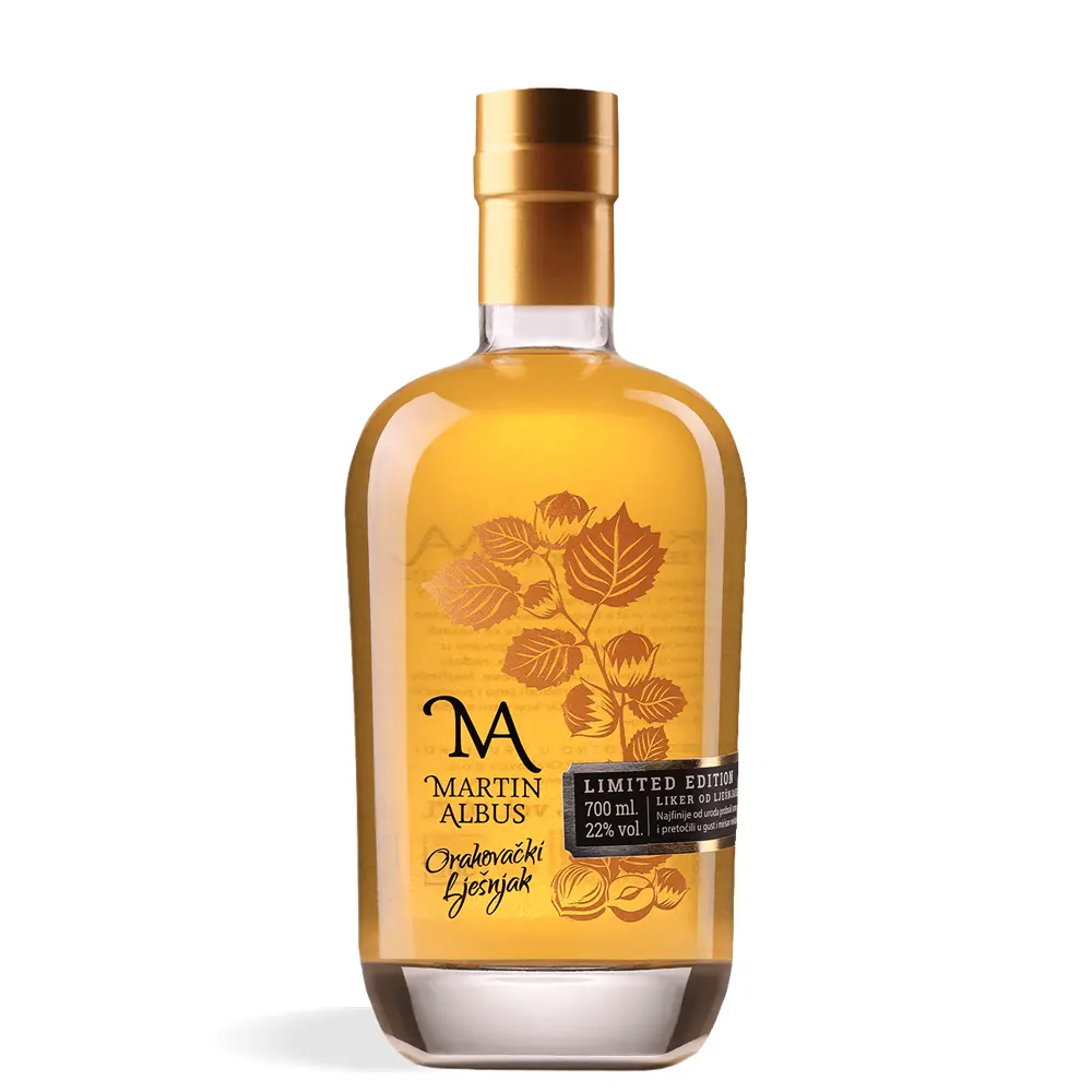 Martin Albus liker od lješnjaka predstavlja vrhunski hrvatski liker nastao od pažljivo odabranih slavonskih lješnjaka iz podnožja Papuka. Ručna izrada i dugotrajna maceracija prženog lješnjaka stvaraju bogat i aromatičan profil. Liker donosi note čokolade, vanilije i prženih lješnjaka, uz punu teksturu i zaokružen okus koji pruža autentično iskustvo domaće kvalitete.