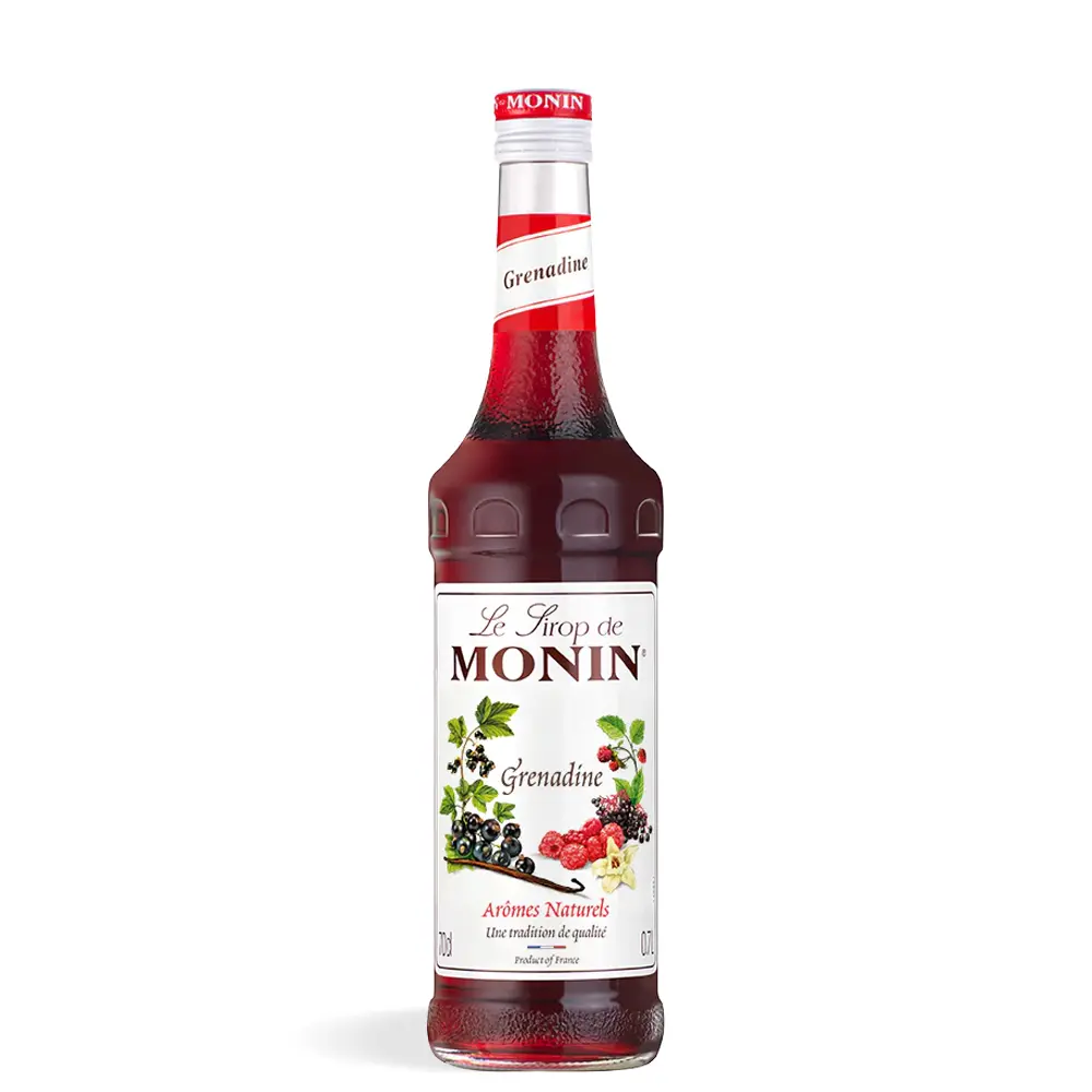 Monin je francuski brend s više od 100 godina tradicije u proizvodnji sirupa za profesionalnu i kućnu upotrebu. Grenadine sirup proizvodi se od pročišćene vode, šećera i prirodnih aroma crvenog voća, bez umjetnih bojila i konzervansa. Karakteristična boja postiže se pomoću koncentrata voća, dok receptura osigurava dugotrajnu stabilnost i izraženu aromu. Sirup se puni u staklene boce koje čuvaju njegovu kvalitetu i omogućuju precizno doziranje.