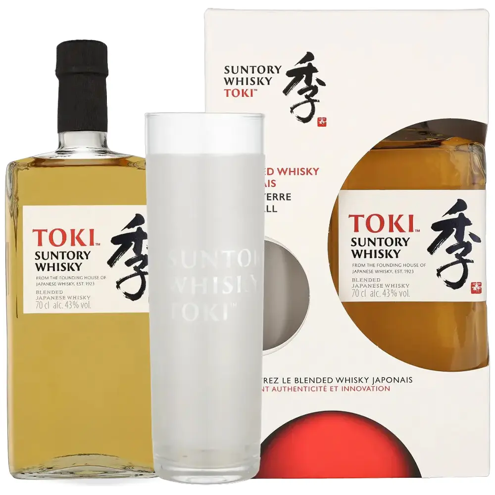 Majstori miješanja (blenders) pažljivo uravnotežuju whiskyje odležane u američkom bijelom hrastu, sherryju i ponovno paljenim bačvama, čime se postiže sklad između voćnosti, slatkoće i pikantnosti. Svaka faza proizvodnje odražava japansku filozofiju preciznosti i poštovanja prema prirodnim sastojcima. Ambalaža i čaša u poklon setu osmišljene su u minimalističkom stilu, s naglaskom na čistoću linija i estetiku svjetla, odražavajući duh japanske kulture. Suntory Toki Blended Japanese Whisky predstavlja suvremenu interpretaciju naslijeđa Suntory brenda i savršen je spoj tradicije i modernog duha.