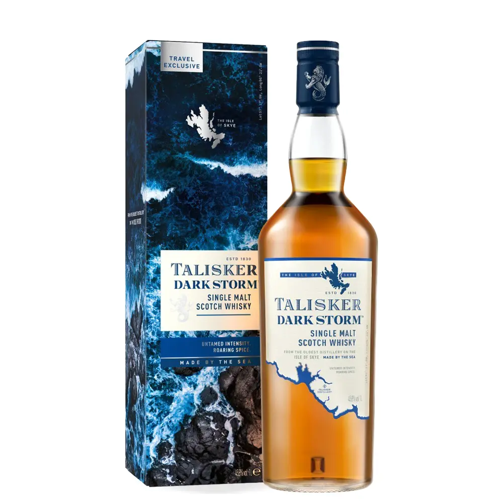 Talisker Dark Storm proizvodi se u legendarnoj Talisker destileriji, osnovanoj 1830. godine na škotskom otoku Skye, poznatom po svojim surovim vremenskim uvjetima i jakom utjecaju mora. Ova edicija lansirana je 2013. godine, ekskluzivno za travel retail tržište, kao najdimniji i najzačinskiji Talisker do tada. Ključna posebnost Dark Storma je korištenje posebno prženih američkih hrastovih bačvi, koje viskiju pružaju duboke slojeve dima i začina, istovremeno čuvajući prepoznatljivu slanost i svježinu Taliskera.