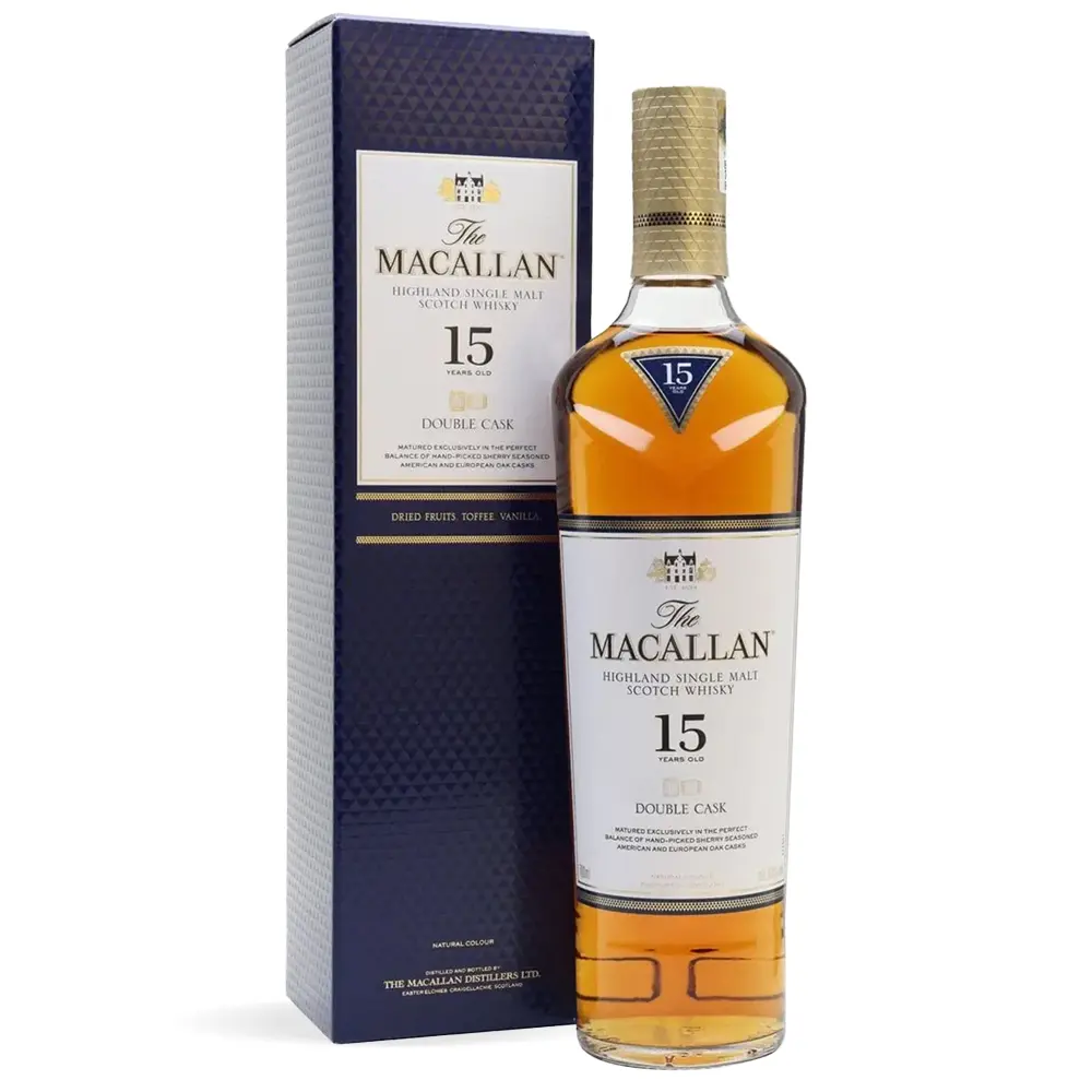 The Macallan 15 Year Old Double Cask whisky nastaje dozrijevanjem u pažljivo biranim bačvama europskog i američkog hrasta, koje se prije punjenja začinjavaju Oloroso sherryjem. Europski hrast unosi bogate začinske note i dubinu, dok američki doprinosi notama vanilije, badema i meda. Okus je slojevit, ali skladan, s naglascima na suho voće, butterscotch, đumbir i tostirani hrast.