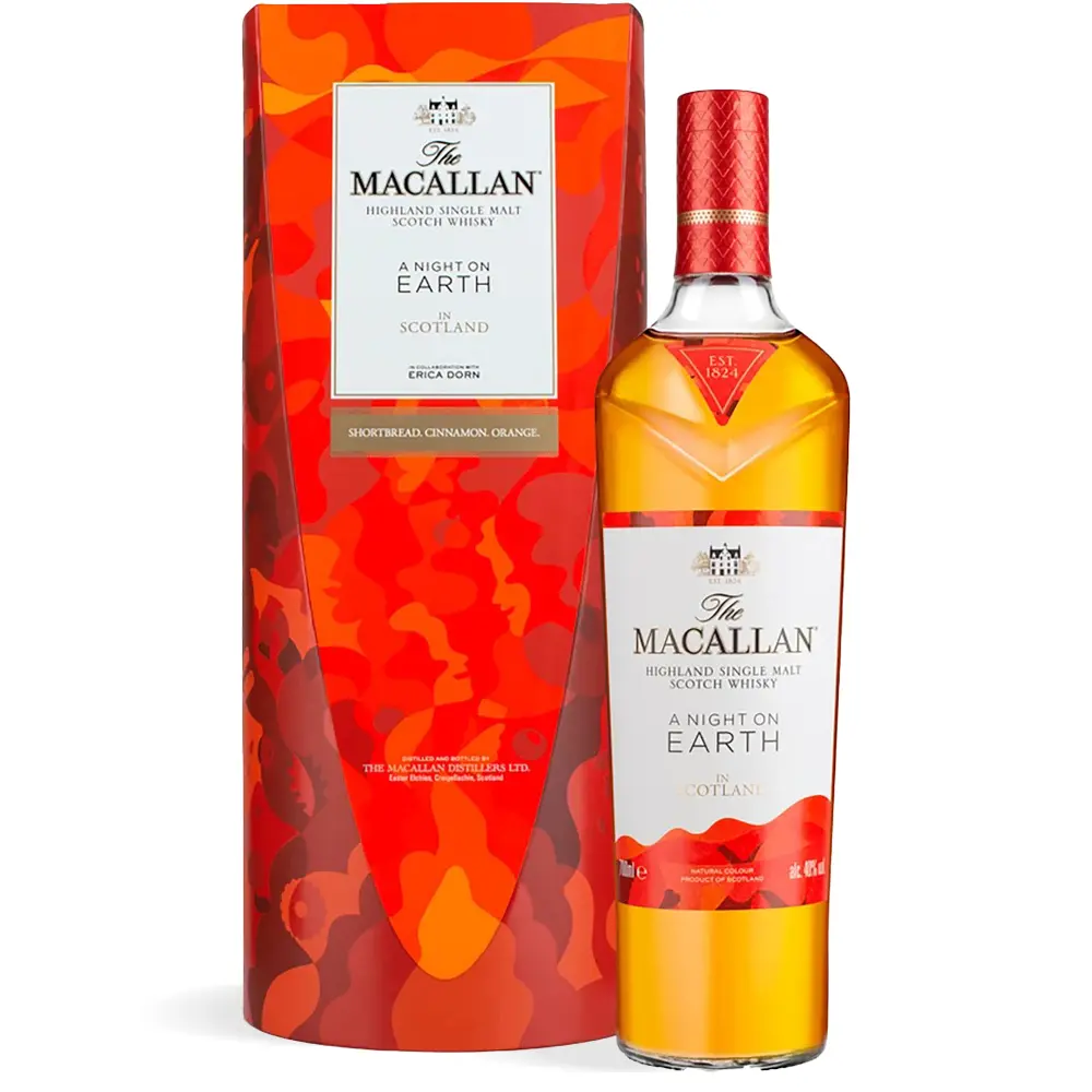 The Macallan A Night On Earth In Scotland jedinstven je single malt whisky koji slavi Hogmanay, škotsku novogodišnju tradiciju. Nastao u suradnji s japanskom umjetnicom Erica Dorn, ovaj whisky donosi profinjene arome vanilije, pečenih jabuka i slatkih začina. Bočica i pakiranje odišu umjetničkim duhom, čineći ovo izdanje idealnim poklonom i kolekcionarskim draguljem.